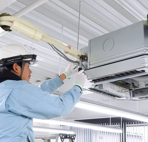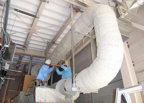 機器類の設置、配管類の敷設やガス溶接、冷媒ガスの充てん・回収などを実施しており、換気設備についても機器類の設置やダクト類の敷設に対応しています。